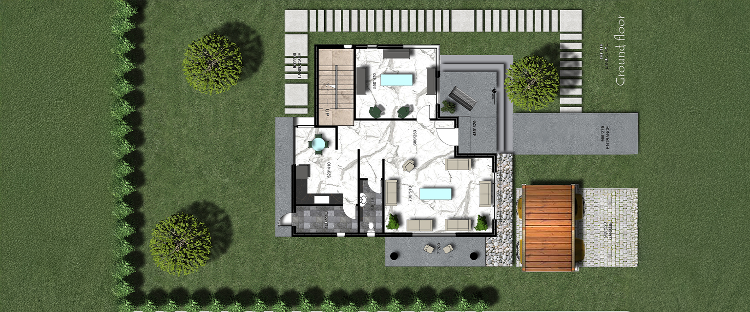 This villa epitomizes modern architectural principles, emphasizing clean lines, open spaces, and seamless integration with nature. The design includes a ground floor and first floo