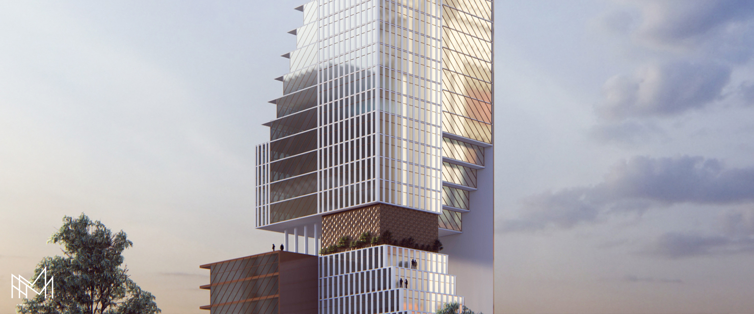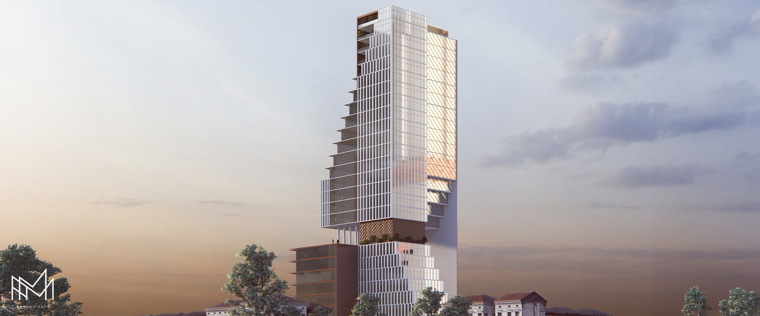 Multi-purpose Building This project features a unique square architectural form, creating a distinct and modern visual identity. The layout blends residential and commercial functi