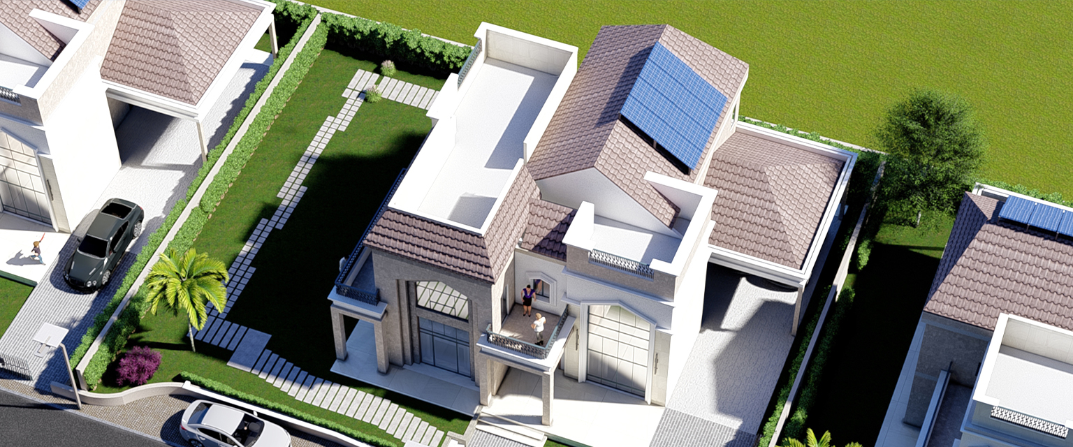 - Floating volumes and sculptural forms give the villa a distinct character.