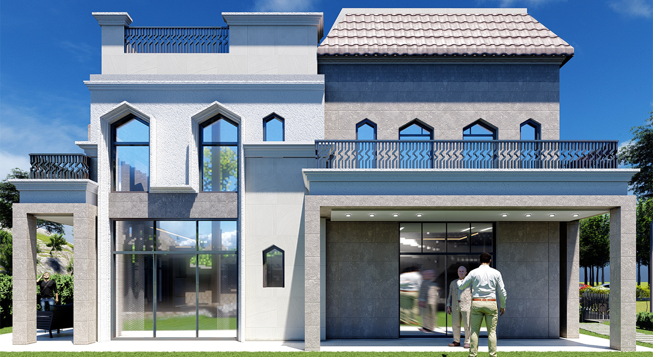 This luxurious private villa is crafted with an elegant facade and a grand elevated entrance, combining modern architectural design with thoughtful functionality. With an emphasis on high-quality living, this villa features a spacious two-level layout, seamlessly integrating indoor and outdoor spaces for a sophisticated lifestyle.