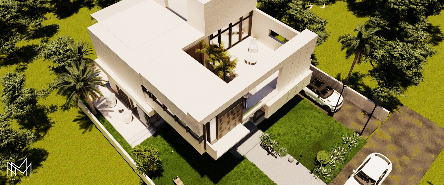This modern villa embodies the essence of minimalist design, prioritizing clean lines, open spaces, and natural light. The compact yet functional layout maximizes space and creates