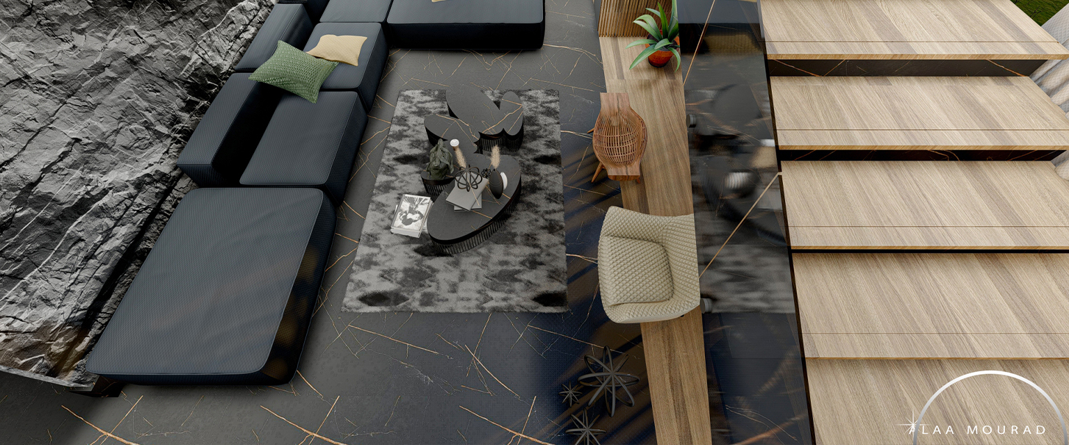 This private villa combines a unique architectural facade with a grand entrance, offering a modern design tailored for luxury and comfort. The villa’s structure includes a ground