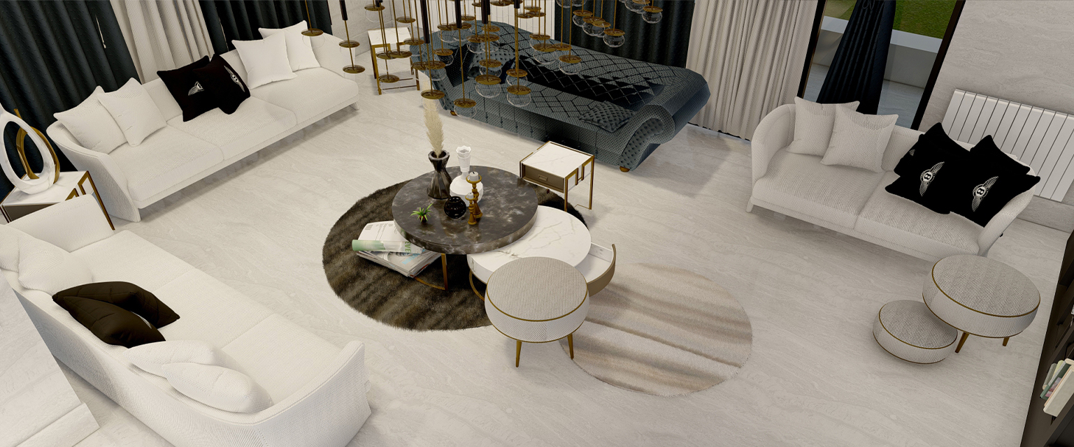 Furniture: Plush sofas and statement armchairs for a cozy yet luxurious feel.