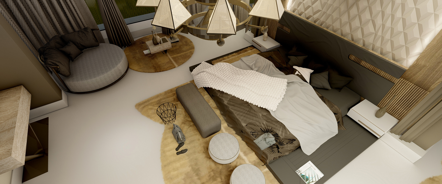 Color Palette: Neutral tones with soft textures for a serene ambiance.